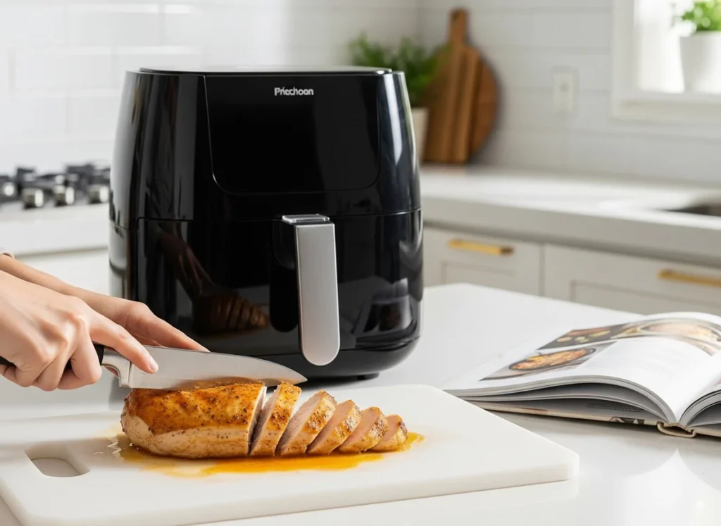 Air fryers cook fast but may brown food before it’s fully cooked inside. A thermometer verifies doneness and prevents undercooking. It makes air fryer meals safer and more reliable.